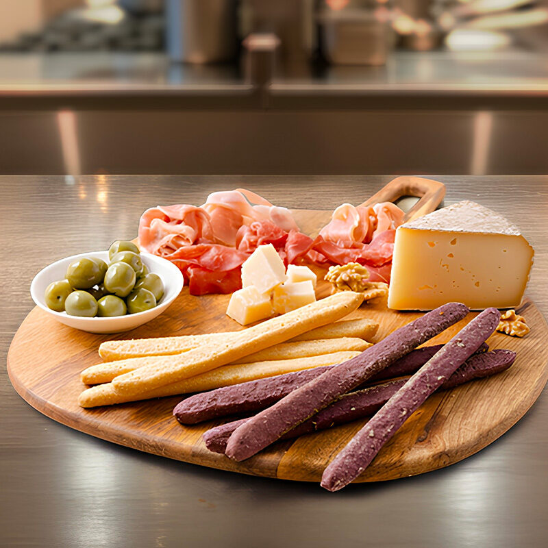 Tagliere rustico con Scrikki mais e mais viola Grissini Tagliere rustico con Scrikki mais e mais viola